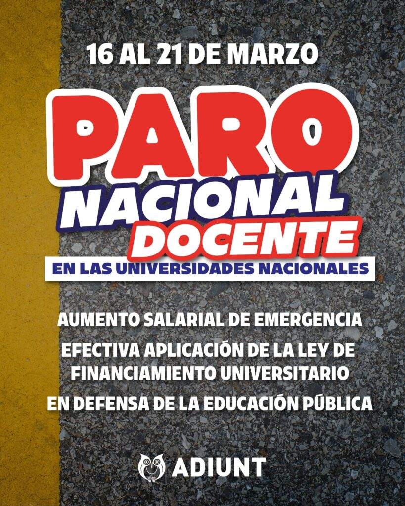 En Tucumán, ADIUNT se suma a la medida convocada por CONADU Histórica del 16 al 21 de marzo.