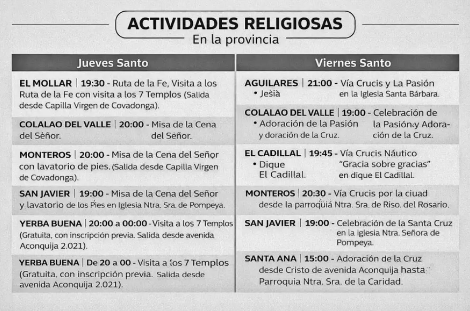Conocé el cronograma de actividades para este Jueves y Viernes Santo en Tucumán.