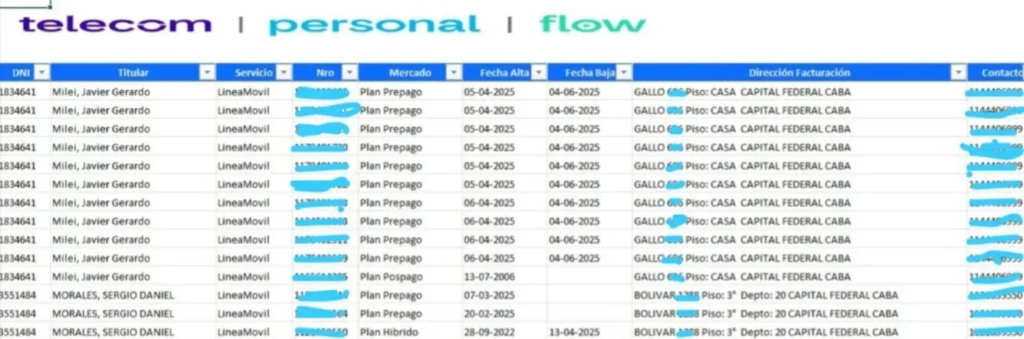 Según el documento que pudo cotejar El Destape, fueron 10 las líneas que se dieron de alta en esas fechas a nombre del Presidente y no 9. Y todas se dieron de baja dos meses más tarde y el mismo día: el 4 de junio de 2025.