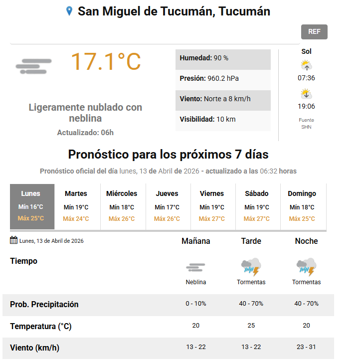 Tucumán arranca este lunes 13 de abril con un cambio brusco en las condiciones del tiempo. Según el pronóstico oficial, la nubosidad irá en aumento y dará paso a precipitaciones que afectarán a gran parte del territorio provincial.