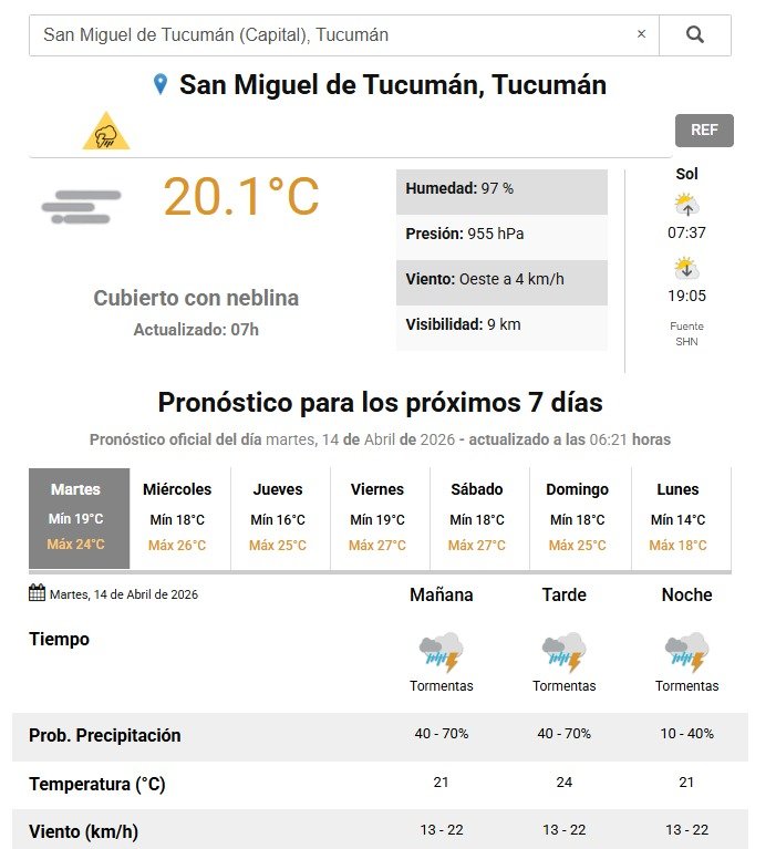 La inestabilidad climática que comenzó a principios de semana se intensifica este martes 14 de abril. El fenómeno meteorológico afectará tanto al Gran Miguel de Tucumán como a los departamentos del este y el sur provincial, con acumulados de agua que podrían generar complicaciones transitorias.