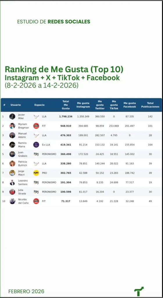 “Hay un reconocimiento a la izquierda por la manera en que enfrentamos al gobierno de ultraderecha de Milei desde el primer día, sin especulaciones, aunque en la dirigencia política muchos nos cuestionaban por esa intransigencia”, dice Bregman a El Destape, y destaca el crecimiento que experimentó en redes sociales en los últimos meses. Durante la discusión de la reforma laboral, sus posteos sumaron casi un millón de “me gusta”, solo debajo de los de Milei, con 1,8 millones, y muy por encima del primer peronista en el ránking, Grabois, en el 5° puesto con 360.000 “me gusta”.