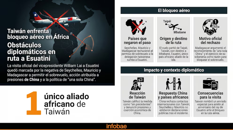 Seychelles, Mauricio y Madagascar cedieron a la exigencia de Beijing e impidieron que el presidente de Taiwán visite al único país aliado que tiene en África. La acción desencadenó repudio internacional y solidaridad hacia Taipei