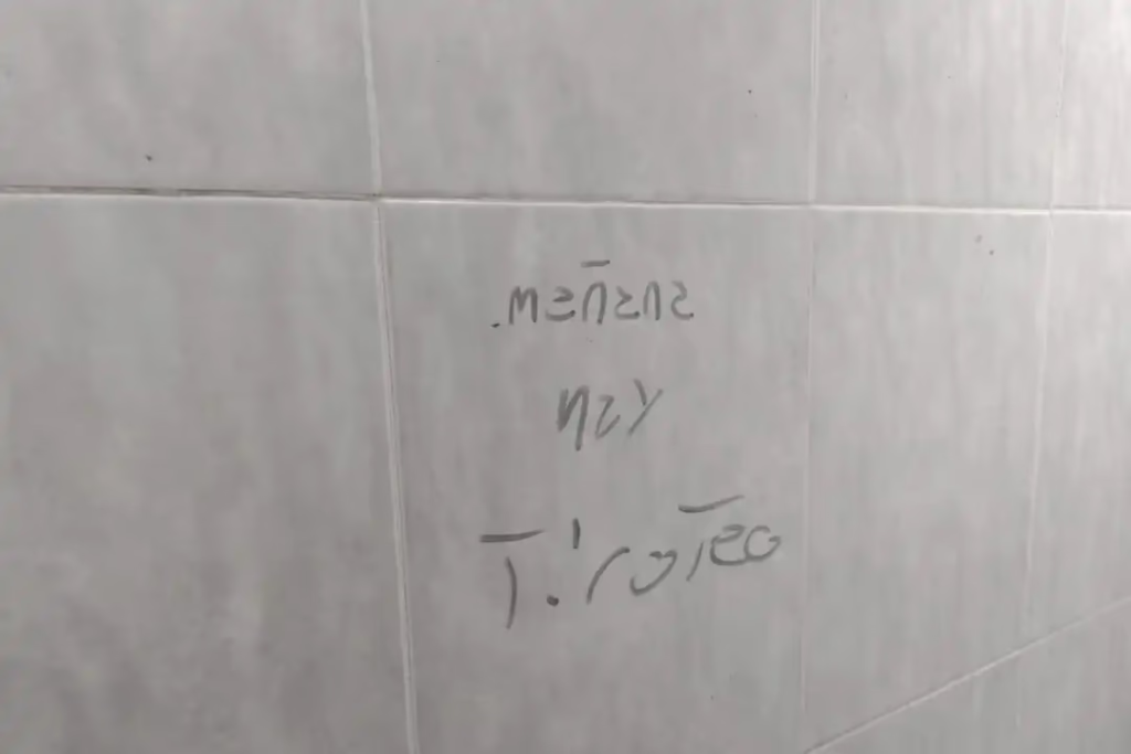 En la Escuela República de Paraguay la directora informó que se detectó una inscripción realizada con felpa en uno de los baños que alertaba sobre un tiroteo. El marcador había sido arrojado dentro del inodoro, pero logró recuperarlo.